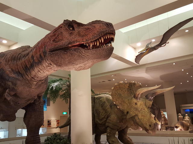 2016-08-08 愛媛県総合科学博物館 ブログ 今治からの帰りは... 恐竜が大好きです♪ 化石もいろいろあり楽しめます(*´∀`) 感動したのは動く恐竜~ 近くで見れるし大きいし迫力満点(((*≧艸≦) 恐竜だけではなくプラネタリウムがあったり 宇宙のゾーンや愛媛の自然にいた動物たちのゾーンなど 見に行って楽しめる博物館です! なんだかんだと見てたら、軽く1時間は過ぎていました(笑)